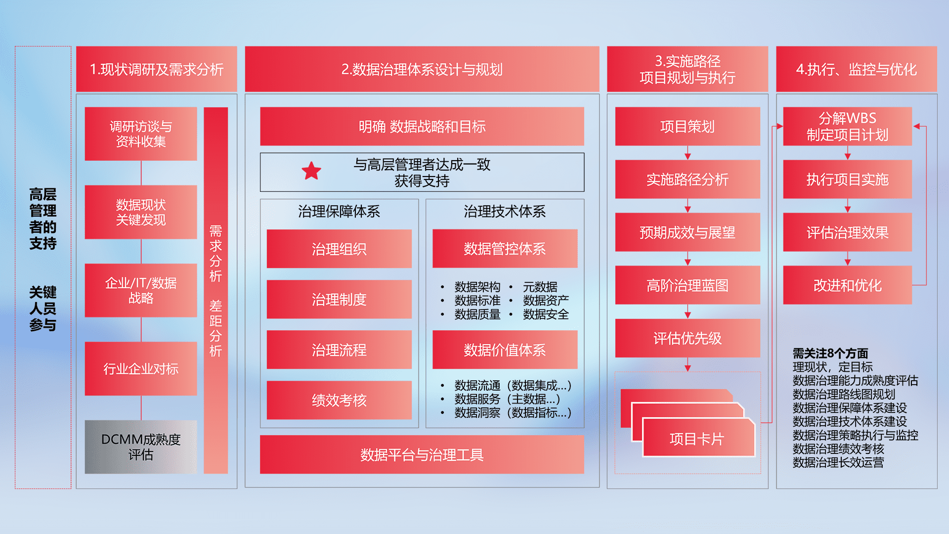 制定并执行统一的数据标准,,,规范数据定义和格式,,消除冗余和不一致性,,,实现跨部门和跨系统的数据一致性,,为企业提供标准化的数据基础。。。。